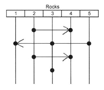 The numbers in each series were symmetrically positioned with respect to the central rock (Rock 4). The initial series was the central rock’s two neighbors. Then, alternately, each series added one rock until the series of odd numbers reached its maximum—spanning all seven rocks.